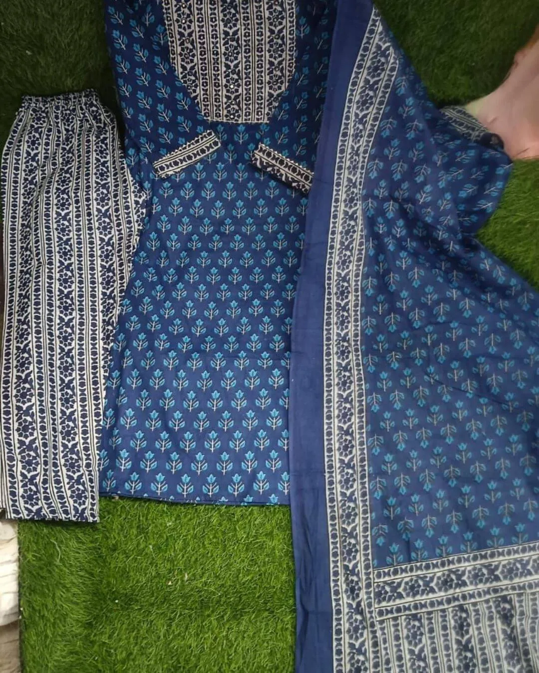 Blue Cotton Printed Kurti Dupatta Pant Set โ€“ Specifications