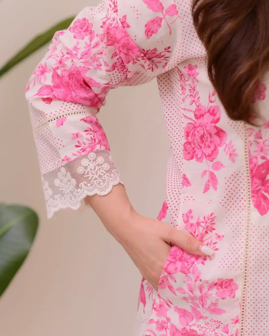 Exquisite Lace Detailing, Side Pocket in Kurta, Breathable Fabric