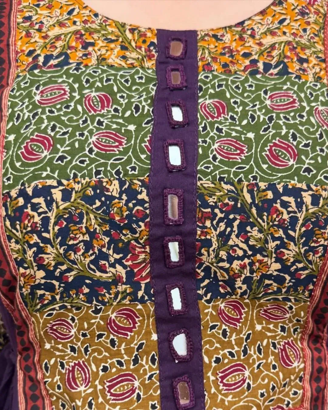 Beautiful Mirror Work & Thread Embroidery on Yoke