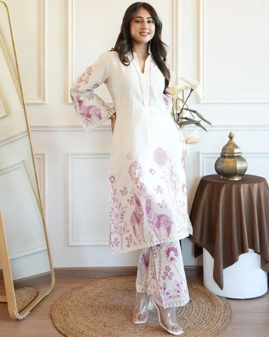 Cotton White Floral Printed Kurti Pant Set – Specifications