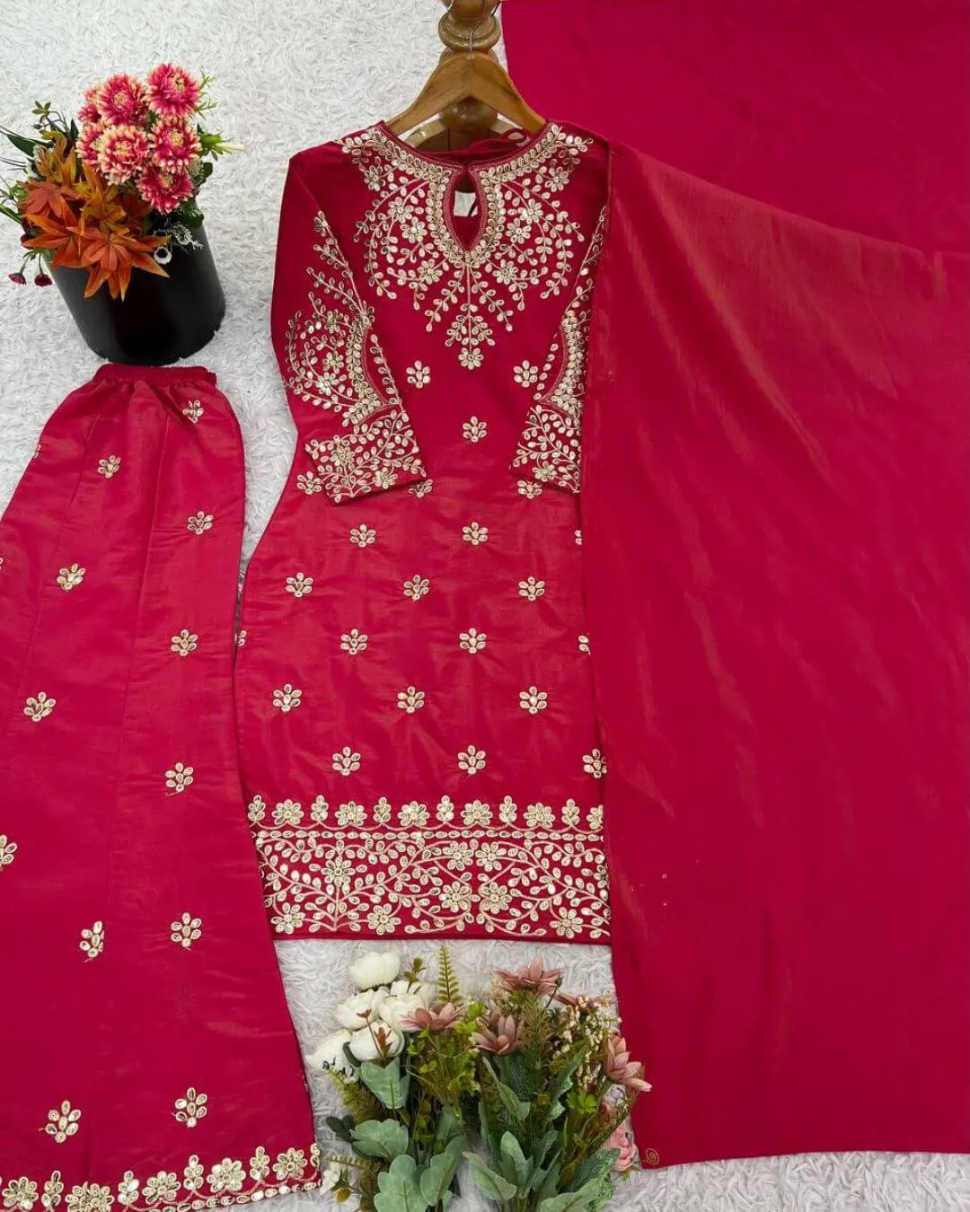 Kurti, Pant & Dupatta: Heavy Simar Silk