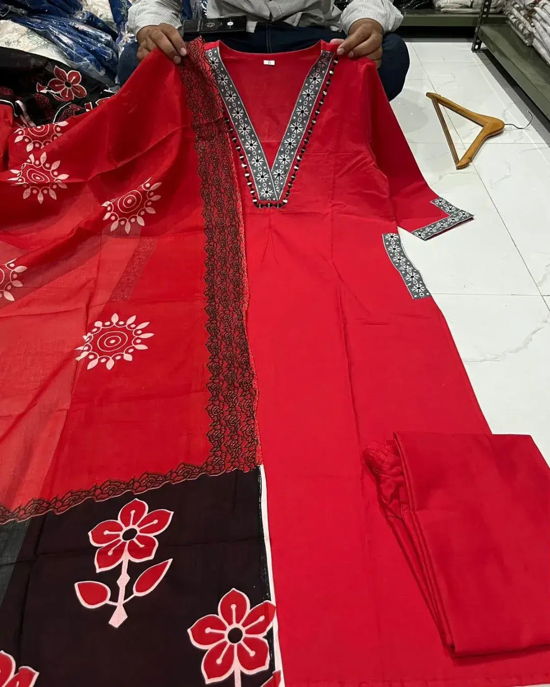 Flared Red Cotton Anarkali Suit Set โ€“ Specifications