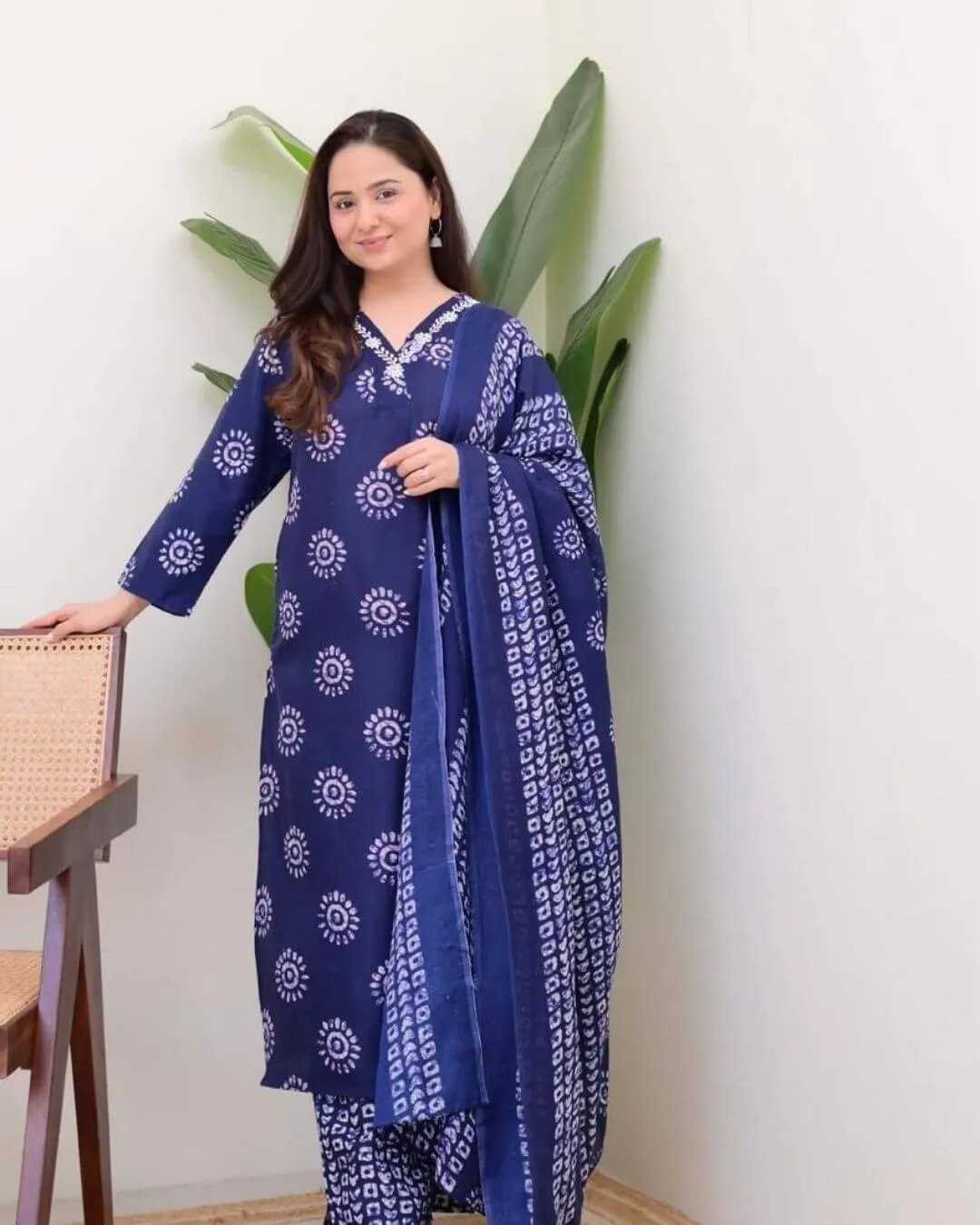 Floral Printed Blue Cotton Suit Set – Specifications