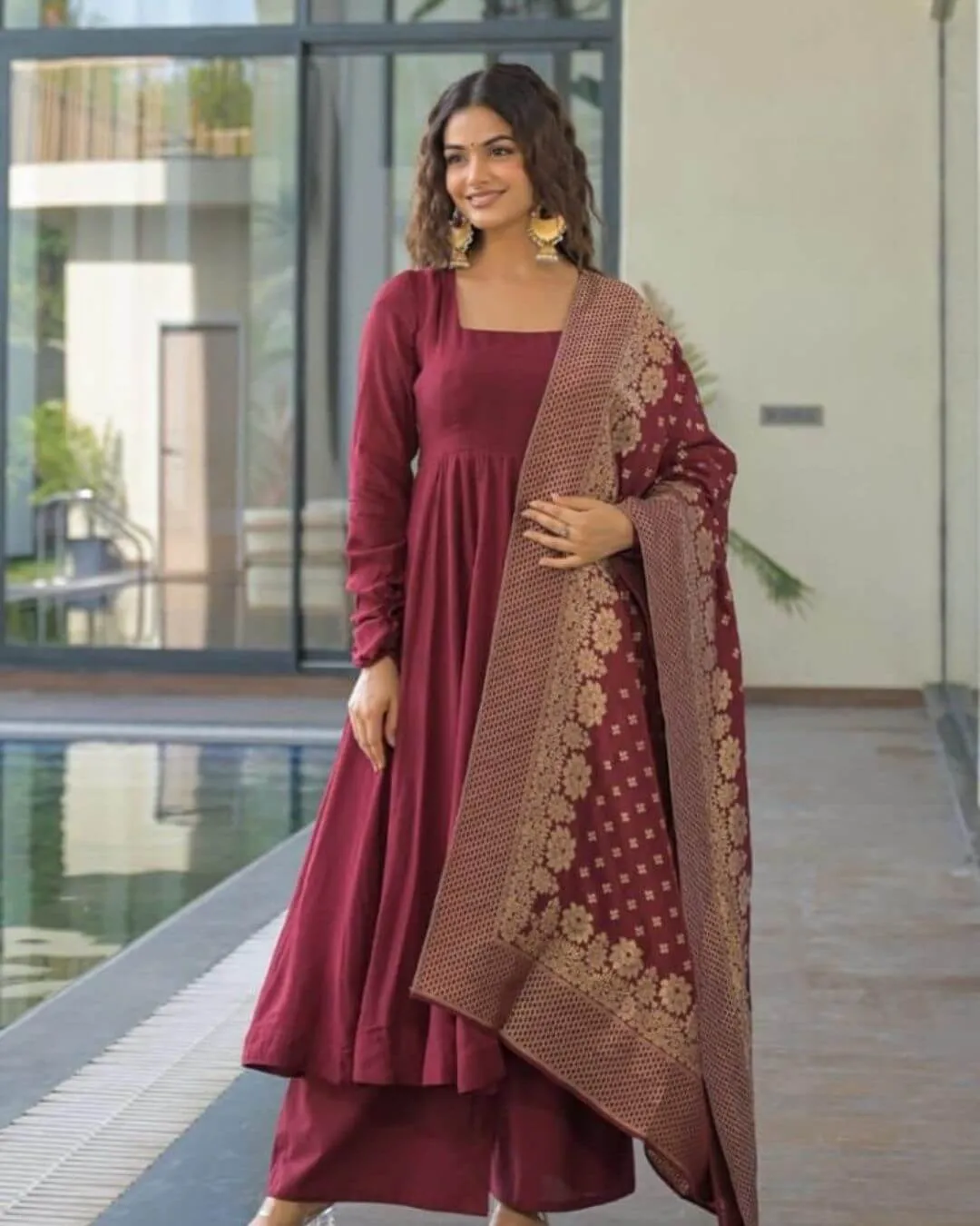 Anarkali Kurta, Cotton Pant, and Banarasi Chanderi Dupatta