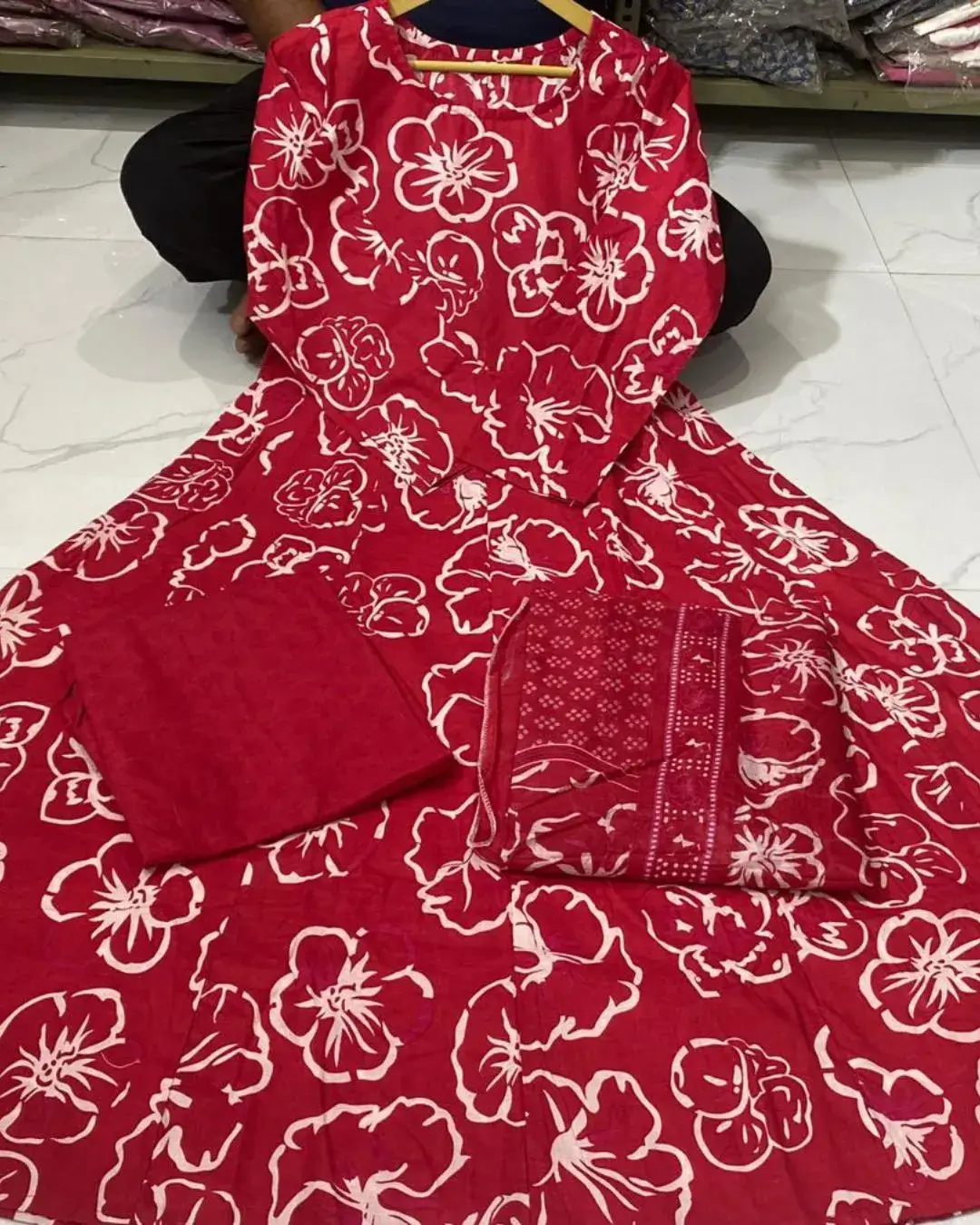 Red Cotton Full Flared Anarkali Suit Set​​ – Specifications