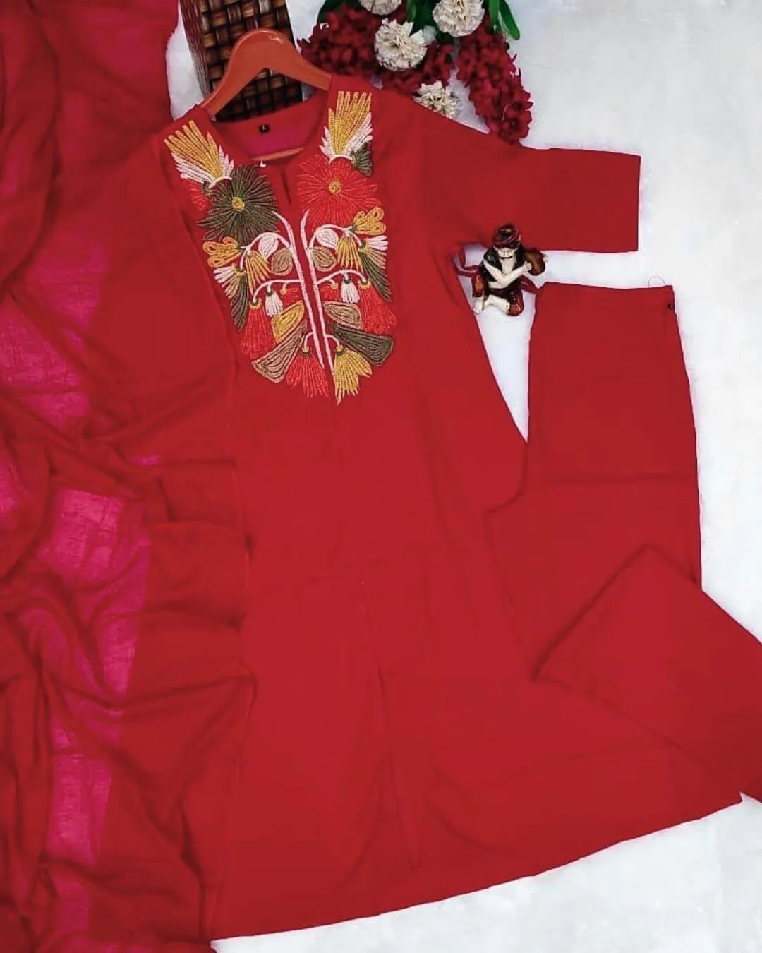 Elegant Mal Cotton Kurti Pant Dupatta Set