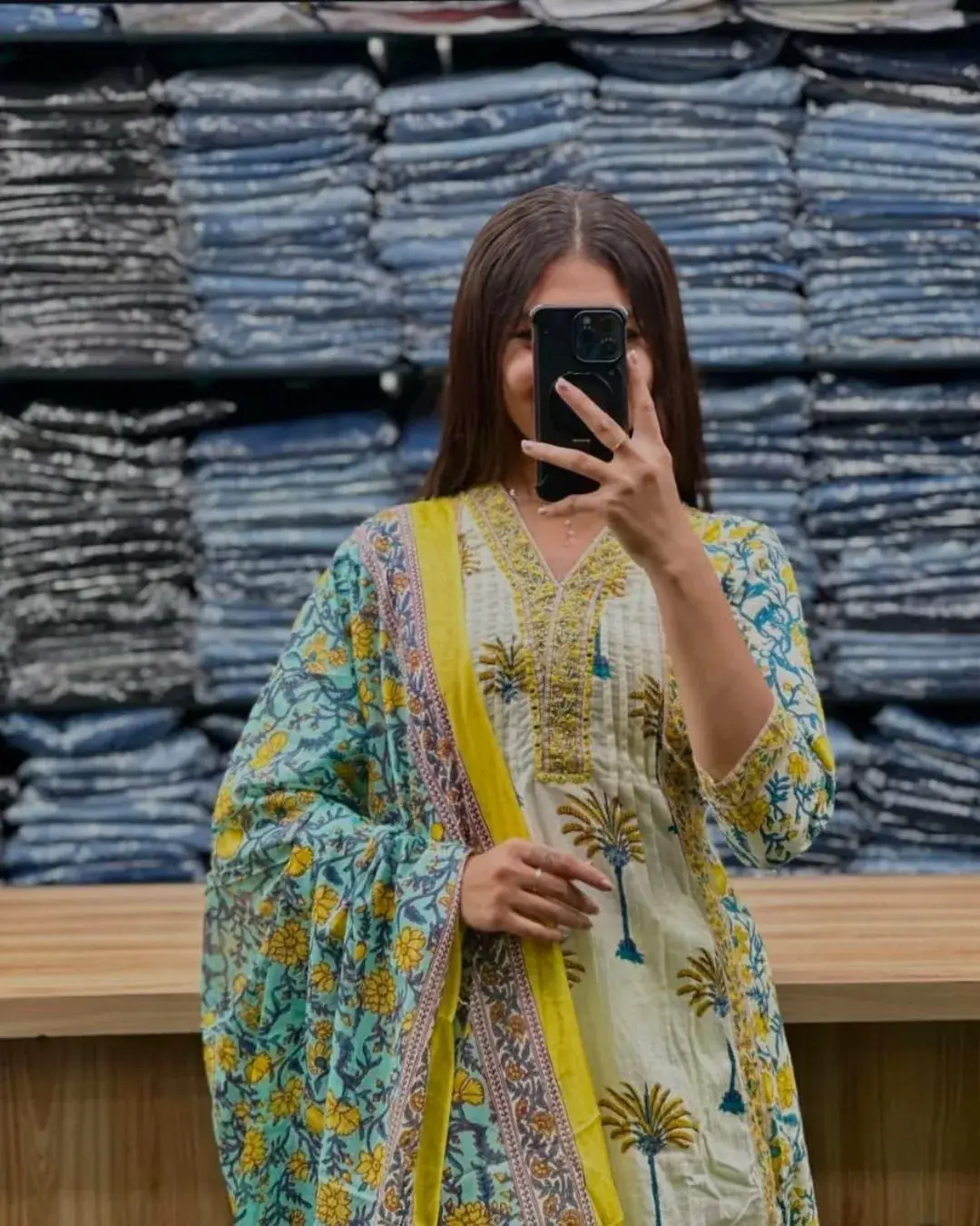 White Floral Print Cotton Suit Set โ€“ Specifications